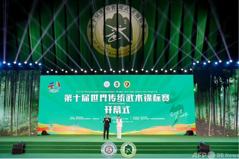 大会の開催地である峨眉山市は世界遺産の複合遺産に登録されており、中国の国家級無形文化遺産の代表例の一つである峨眉武術の発祥地でもあります。峨眉武術は約3000年の歴史がある中華武術の三大流派の一つで、発展の過程を通じて68の流派と1942の技法と型が編み出され、「剛柔相済、内外兼修(剛と柔の相互補完、内面と身体の修練を兼ねる)」と呼ばれる独特な体系が形成されました。現在では100以上の国と地域からの多くの武術愛好者がその名声を慕って師を求め、技を学んでいます。(c)CGTN Japanese/AFPBB News