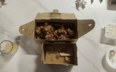 娘がチキンを食べたいと言った10月20日、いつもの店が休みだったため、別の店舗に配達アプリで注文した。すると、クーポンも適用されて1万8000ウォンで注文できた。「届いたチキンの箱がとても大きく、比較してみたら、常連店のチキンの箱よりはるかに大きかった」という。