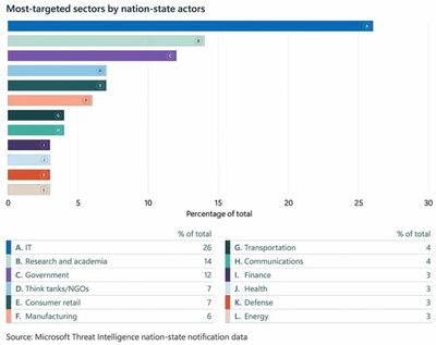 MSは「中国の攻撃は国家競争力の強化と経済的利益の追求が目的で、インターネットサービスプロバイダー(ISP)や通信事業者など主要なITインフラを狙っている」と分析。一方で「北朝鮮の攻撃はブロックチェーン技術や暗号資産関連団体を対象に、資金獲得や情報収集を狙っている」と指摘した。