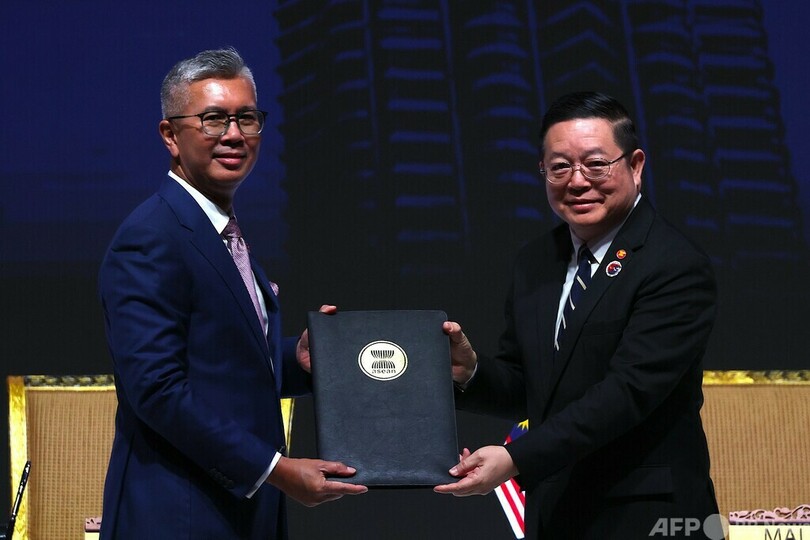 中国・ASEAN自由貿易協定3.0 アップグレード交渉は、2022年11月に開始を宣言し、2024年10月に実質的に終了しました。このアップグレード議定書は、現行の中国・ASEAN自由貿易協定および「地域的な包括的経済連携(RCEP)」協定を基礎に、新興分野における互恵協力を全面的に拡大し、規格・規制分野の互換性を強化し、地域の貿易円滑化および包摂的発展を促進することを目指しています。(c)CGTN Japanese/AFPBB News