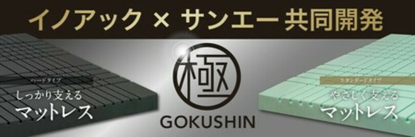 日本で初めてウレタンフォームの生産を始めた化学素材のリーディングカンパニーである株式会社イノアックコーポレーション(代表取締役社長:野村泰、名古屋本社:愛知県名古屋市・東京本社:東京都品川区、以下イノアック)のグループ会社である株式会社イノアック琉球(代表取締役社長:嶋田光二、本社:沖縄県うるま市、以下イノアック琉球)は、株式会社サンエー(代表取締役社長:豊田沢、本社:沖縄県宜野湾市、以下サンエー)と共同開発したマットレス“極 - GOKUSHIN -”をサンエー全店舗にて販売を開始しましたことをお知らせします。