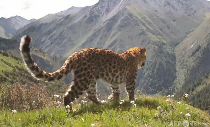 ユキヒョウとヒョウは中国国家一級保護野生動物で、ユキヒョウは標高の高い高山草地や裸岩地帯に生息していますが、ヒョウは標高の低い森林や低木地帯の環境を好みます。今回同じ地点に相次いで現れたことは極めて珍しく、研究価値が高いとみられています。(c)CGTN Japanese/AFPBB News