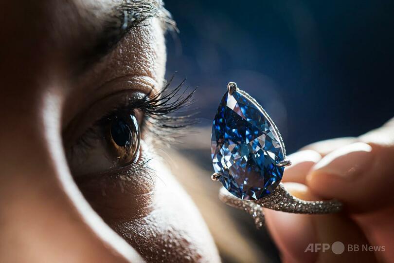 ただ、今回の落札価格については予想を下回ったとの見方もある。欧州最大の宝石商「77ダイヤモンズ」のトビアス・コーミンド社長は、「地政学的な緊張や、中国経済の低迷で多くの通常の買い手が参加を控えたことで、会場は慎重な雰囲気に包まれていた」との見解を示した。(c)AFP