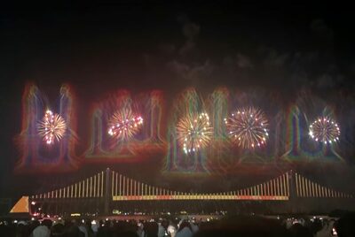 花火ショーは午後7時に始まり、ジードラゴンのアルバム「Übermensch」のオリジナル音源に合わせて約9万発の花火が夜空を彩った。