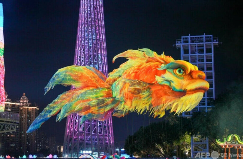 中国全国運動会開会式の大鰲魚と木綿花が再登場 広州国際ライトフェスティバル開催