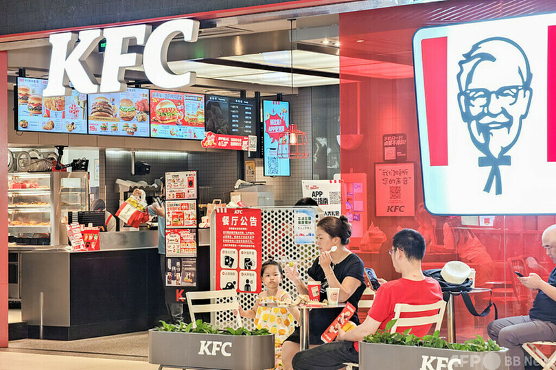 デジタル戦略では、人工知能(AI)を運営に全面導入し、生成AIも活用。顧客体験や食品安全の向上、運営効率化に寄与しています。2025年の営業利益率は全社で10.8~10.9%、店舗利益率はKFC17.3%、ピザハット12.7%を見込みます。 (c)CGTN Japanese/AFPBB News
