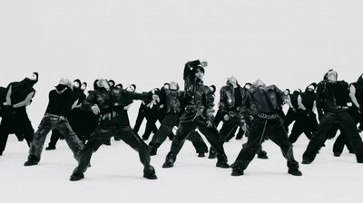 映像は真っ白な背景の中、仮面をつけた42人のメガクルーとメンバーが歩くシーンから始まり、完璧にそろったダンスと迫力あるパフォーマンスで緊張感あふれる映像に仕上がっている。