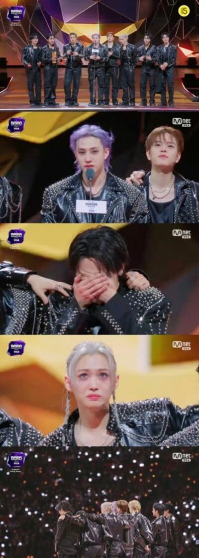 授賞式は11月29日に香港のカイタクスタジアムで開催。Stray Kidsは4作目のフルアルバム「KARMA」で大賞を手にし、ステージ上で感激の涙を見せた。