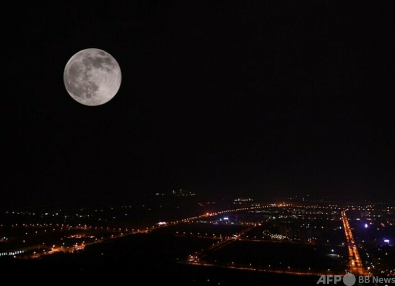 月が真ん丸になるのは5日午前7時14分ですが、空が明るく鑑賞には適さないため、一番の見頃は4日夜です。(c)CGTN Japanese/AFPBB News
