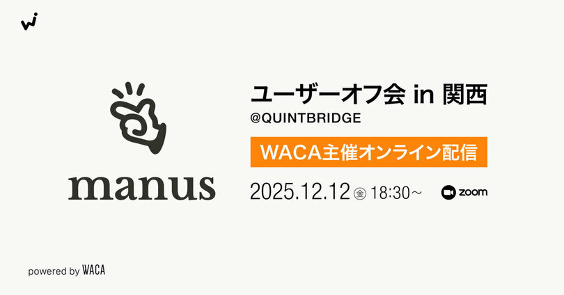 本セミナーは、関西在住のManusユーザーが集まるオフ会を、全国の方に向けてWACAがオンライン配信を行うイベントです。
