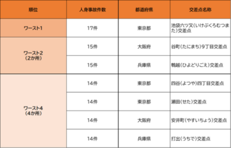 ~全国ワースト1位は「池袋六ツ又交差点」、2年連続で最多事故発生~