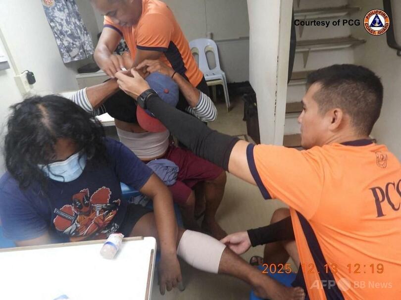 フィリピン沿岸警備隊のジェイ・タリエラ報道官は13日、漁師たちは「放水砲と危険な妨害行動の標的にされた」との声明を発表。「3人の漁師が打撲や開放創を含む身体的なけがを負った。2隻(のフィリピン漁船)も高圧放水砲の攻撃で大きな損傷を受けた」と述べた。