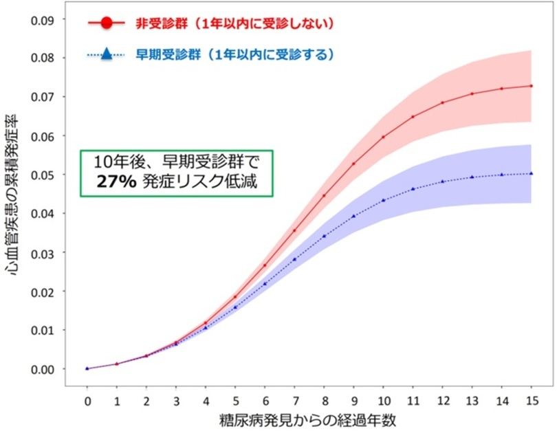 【横浜市立大学】健診で糖尿病を指摘された後の「早期受診」で10年間の心血管疾患リスクが27%低下