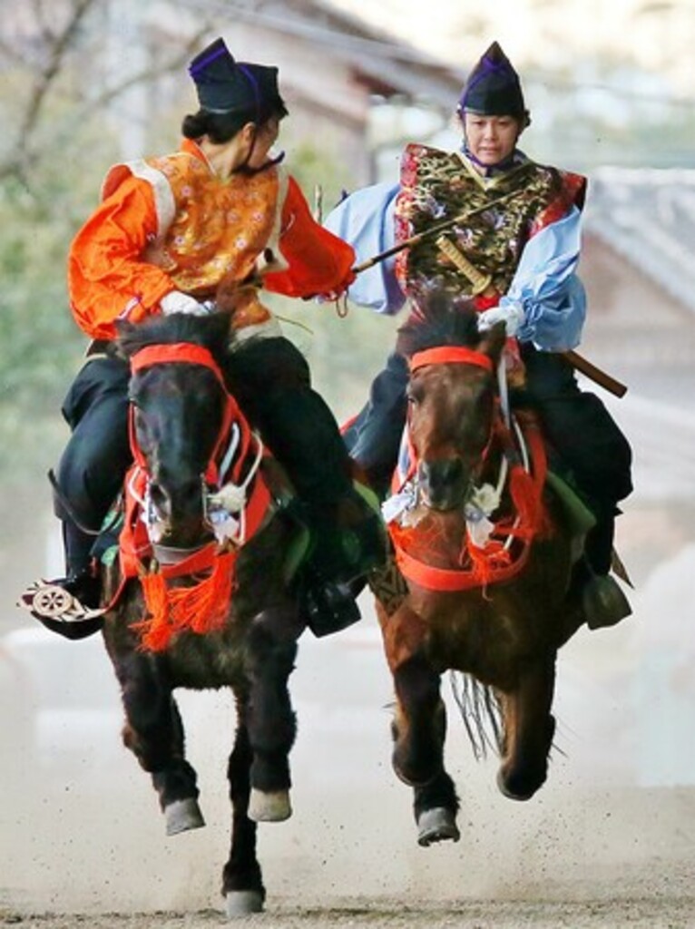 日本初の国営牧場が置かれたこの地は、1400年以上にわたり馬の行事が続く “馬の聖地” として知られています。新年には「全国 馬・競馬・乗馬 安全祈願大祭」が催され、乗初式も行われます。5月6日の例祭では、日本最古の競馬として伝わる「足伏走馬(あしふせそうめ)」が披露され、全長約400mの馬場を駆け抜ける迫力ある走りが見どころ。また、秋には、全国から乗り手が集い、各流派の流鏑馬や馬上武芸、競馬神事が行われる「馬上武芸奉納祭」も開催され、華やかな奉納行事が繰り広げられます。年間を通じて、ここならではの深い馬文化を体感することができます。