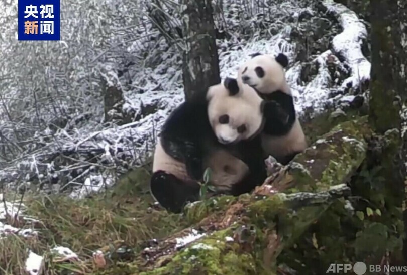同州松潘県の林業・草原局野生動植物保護ステーションの責任者である魏松濤氏によると、動画を分析した結果、2頭のパンダは母子とみられ、二つの映像を見比べると、子どもの成長は明らかで、体形は母親とほとんど変わりませんでした。今回整理された映像はパンダの自然行動に対する人々の理解を深めるだけでなく、パンダの野生生活習性の研究をデータ面から力強く支えるものです。(c)CGTN Japanese/AFPBB News