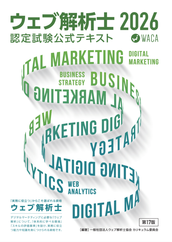 2026年1〜12月に開催されるウェブ解析士認定試験およびウェブ解析士認定講座に用います。ウェブ解析やデジタルマーケティングをこれから学ぶ人だけでなく、学び直しや実務にも役立つ内容です。