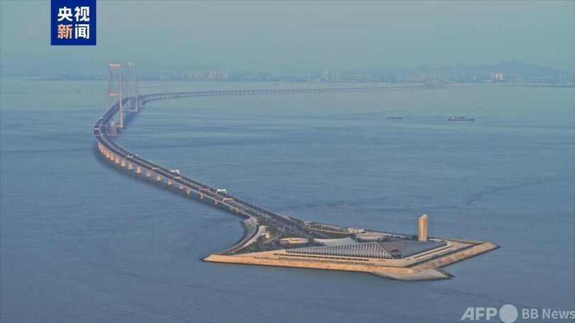 深中通路の西人工島は、深中通路での海上大橋と海中トンネルを結ぶハブであり、面積はサッカー場19面分に相当する約13万7000平方メートルで、空中から見れば、羽ばたく大鳥のような形をしています。正式開放後には大規模なVR体験エリアが設置され、海塩を使った特別飲料の試飲など、文化と観光に関連する新たな商業モデルが追加され、将来は海上航行や低空域での遊覧飛行なども実施される予定で、より豊富で多彩な充実した文化観光内容を通じて観光客を呼び込みます。(c)CGTN Japanese/AFPBB News