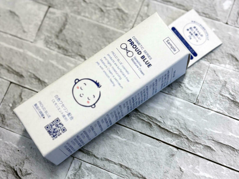 今回神奈川大学が協賛する商品は、神奈川大学発コスメティックブランド「PROUD BLUE」シリーズ(注3)のひとつ、センシティブモイスチュアクリームの特別サンプルとなります。この保湿クリームの特徴は、主成分が水とワセリンのシンプルな処方となっており、界面活性剤を一切使用していません。また、従来ワセリンは、ベタベタする、塗りにくいといった欠点が課題となっていましたが、神奈川大学の特許技術「三相乳化技術」(注4)により、ワセリンの乳化を図ることで、べたつかず伸びが良いクリームの開発に成功しました。赤ちゃんはもちろん、敏感肌の方など、幅広い年代や肌質の方にお使いいただける商品となっています。