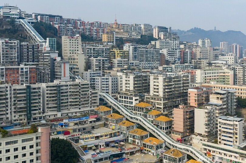中国重慶の巫山神女巨大エスカレーターお目見え 垂直高度240メートル超