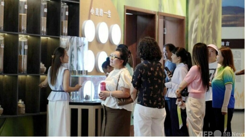 小麦粉の生地を薄く伸ばして皮を作り、包子(饅頭)のように丸く包み、口の部分にストローを差し込んで空気を吹き込むと、バスケットボールほどの大きさの「風船」が徐々に膨らんでいく、これは小麦博物館が観光客向けに見せている「生地風船」のパフォーマンスだ。博物館のスタッフは「当館の有機小麦粉は非常にコシが強いので、ここまで膨らませることができる」と説明する。
