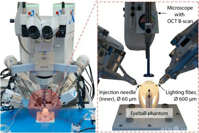 眼球プロテーゼ(人工眼球)、摘出された豚の眼球および生体動物の眼球を用いた網膜下注射と血管内注射の実験検証において、このシステムはいずれも100%の注射成功率を達成しました。位置決め誤差は、医師による手術比で79.87%、医師主導のマスタースレーブ型ロボット手術比で54.61%の低減を達成し、より高い安全性と精度を示しました。(c)CGTN Japanese/AFPBB News