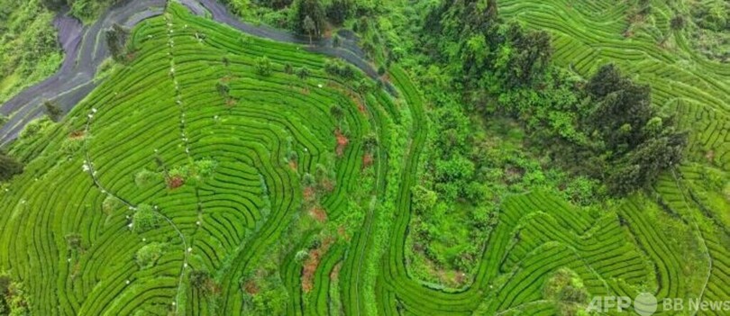 データによると、銅仁の抹茶産業は市内の主要な茶産地7県、茶葉栽培の34郷鎮に広がり、碾茶(てんちゃ)関連企業40社余りの発展と、茶農家11万人の雇用を支えている。雇用創出や農村振興を後押しする、地域の強みを生かした特色産業になっている。(c)東方新報/AFPBB News