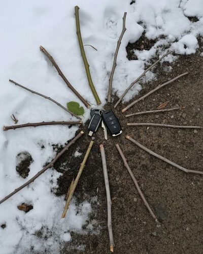 X(旧Twitter)に1月21日、雪が積もった道に落ちていた車のキーの周囲を小枝で丸く囲んだ写真が投稿された。キーが雪に埋もれたり、見過ごされたりしないように、まるで小さな柵のように目立つように印をつけてあった。