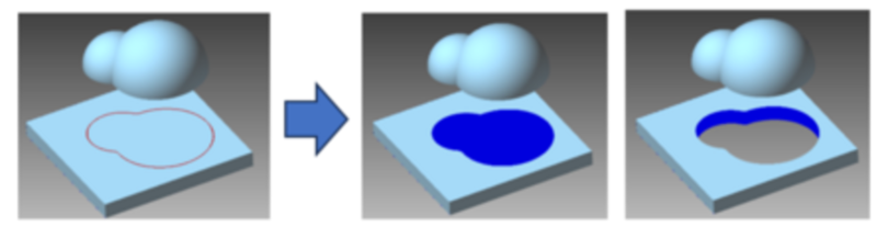 シェルの輪郭線によるトリム機能を追加しました。表面だけでなく立体の裏側もトリム可能です。クリアランス指定も可能となり、3Dプリンター用途など柔軟な設計対応が可能となりました。従来は複数のコマンドを組み合わせて行っていた作業を、1つのコマンドで実行できるようになり、操作性と作業効率が大幅に向上しました。