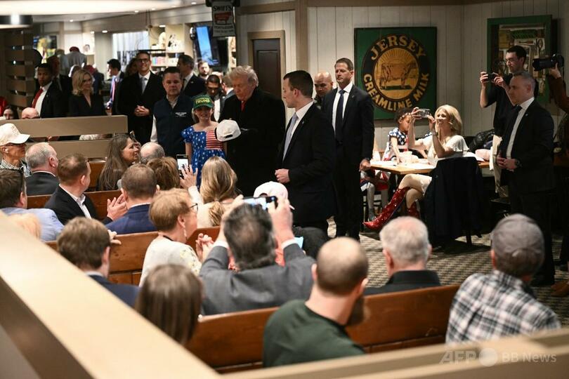 トランプ氏は集会前、スコット・ベセント財務長官とスティーブン・ミラー大統領次席補佐官(政策、国土安全保障担当)を伴い、地元のレストランを訪れ、客たちと会話を交わした。