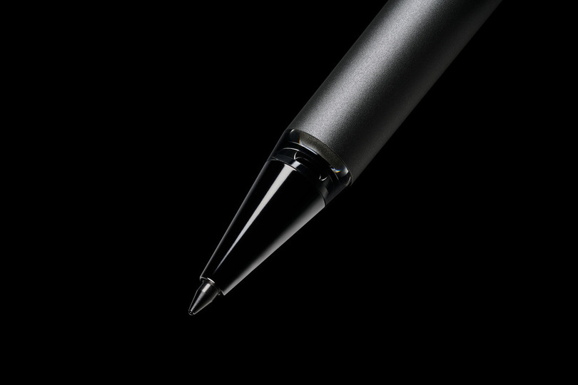 本体軸は日本の金属加工技術を駆使し、1本の金属から削り出したアルミ軸です。特にペン上部の波紋模様は1本あたり1時間以上かけて切削し、彫刻のような造形美を追求しました。さらに日本発祥のアルマイト処理技術とブラスト処理による高い耐久性と触り心地を実現しています。