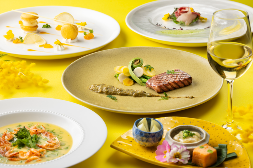 国際女性デーを祝う「ミモザカラー」の春ディナーコース