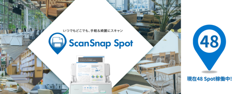 「ScanSnap Spot」は、カフェ、図書館、自治体施設、コワーキングスペースなど、どなたでも利用できる公共空間・施設にiX2500を設置し、訪れた方が自由に・簡単にスキャンいただける新しい取り組みです。本日より、全国48か所のSpotで運用を開始し、今後も設置エリアを順次拡大してまいります。
