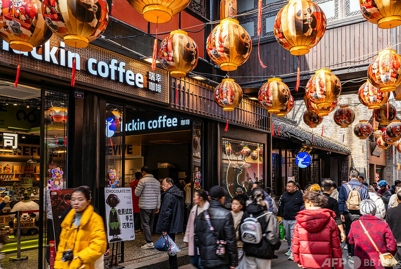 国内では都市部から地方まで高密度な出店を進め、コーヒー消費の裾野拡大に寄与しています。海外展開も着実に進み、瑞幸は中国発の世界的コーヒーブランド確立を目指しています。(c)CGTN Japanese/AFPBB News