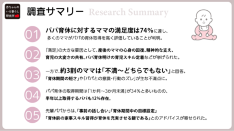 【調査】“パパ育休”ママの満足度74%! ママから「心強い」の声、一方で「期間の短さ」に不満も