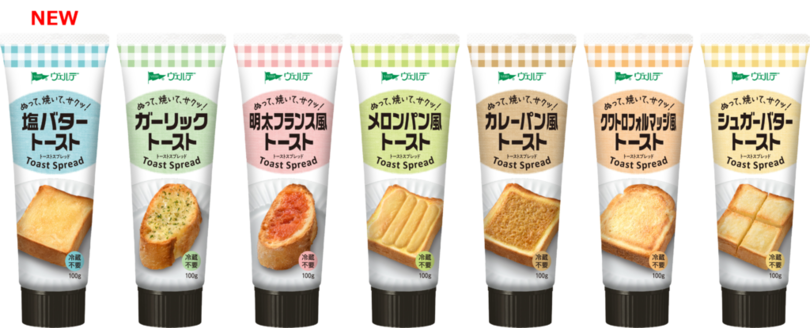 パンに塗って焼くだけで、手軽に本格的なトーストメニューを楽しめるチューブ入りスプレッドです。平口の絞り口で、スプーンを使わずにパンに塗ることができます。トーストのホカホカ感を感じる、視認性の良いパッケージに刷新しました。