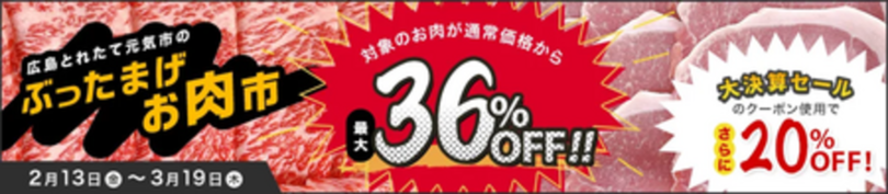 「ぶったまげお肉市」では、これらの対象商品を最大36%OFFで販売しています。