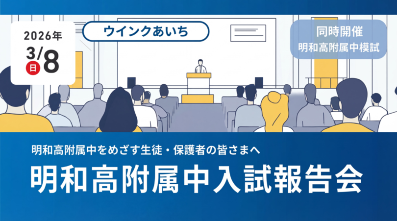 株式会社京進(本社:京都市下京区)が京都・滋賀・愛知を中心に展開する学習塾「京進の中学・高校受験TOPΣ(以下、TOPΣ)」は、愛知県立明和高等学校附属中学校の2026年度(令和8年度)入学者選抜を総括する「明和高附属中入試報告会」を、2026年3月8日(日)に開催します。会場はウインクあいち(愛知県産業労働センター)で、オンラインでの参加も可能です。