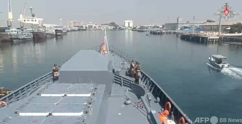 発表では、演習の主な任務はロシアとイランの海軍協力を強化することだとしています。(c)CGTN Japanese/AFPBB News