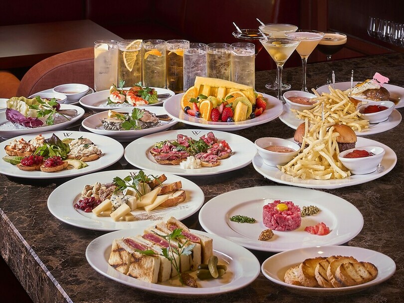ほかアイテムとしては、ウルフギャング・ステーキハウス国内店舗と同様、グラスワインやカクテル、ビールなどのドリンクを通常の半額程で提供するのをはじめ、ハンバーガースライダー(小さなハンバーガー)やクロスティーニ(シーフードやビーフをのせた小さなトースト)などの軽食メニューのほか、新鮮なシーフードを使用したアペタイザー各種、チーズやフルーツの盛り合わせを用意しています。
