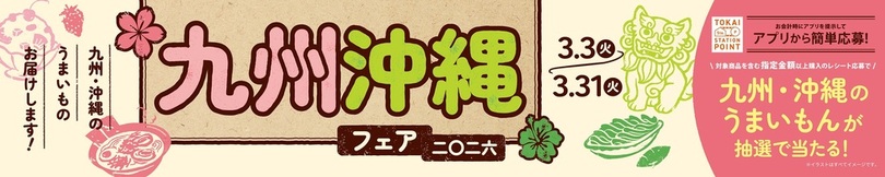 株式会社JR東海リテイリング・プラス(所在地:愛知県名古屋市、代表取締役社長:小林 創)は、2026年3月3日(火)より、「九州・沖縄フェア2026」を開催いたします。