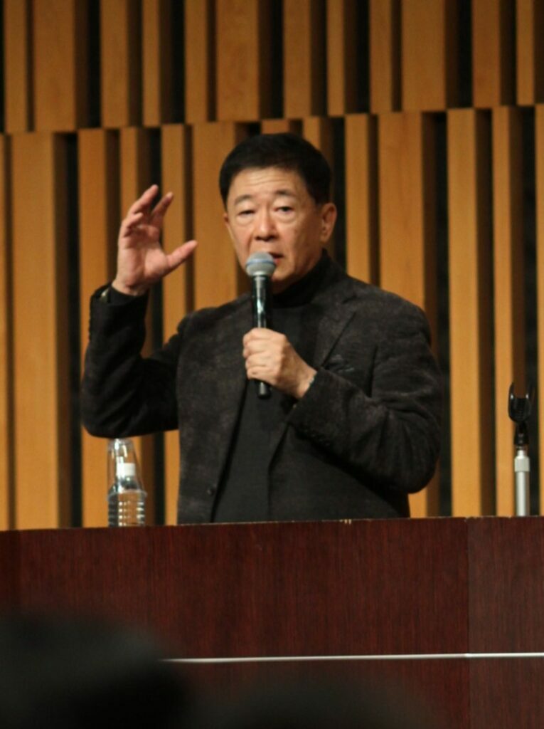第1部は、国際経営学部および教育学部2・3年生を対象として実施。辻野氏が「経営者が共に働きたいと感じる“価値を生む人材”とは」をテーマに講演を行った。