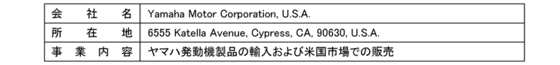 ■ Yamaha Motor Corporation, U.S.A.の概要