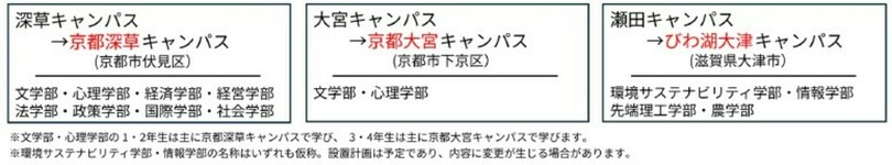 ・2027年4月には、キャンパスコンセプトにあわせて3つのキャンパス名称を「京都深草キャンパス」、「京都大宮キャンパス」、「びわ湖大津キャンパス」に変更し、多様な人が集う場を目指す。
