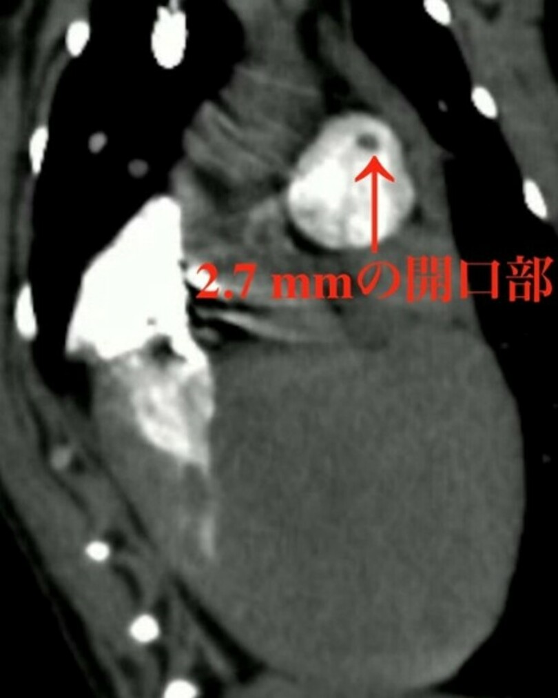 そこで我々は、この問題を解決するためにContinuous HIgh-Enhanced COntrast (CHIECO)法と名付けた特殊な心電同期CT造影検査法を開発し、直径2.7 mmの僅かな開口部を明瞭に描出することに成功しました。またそれだけでなく、非侵襲的に3次元的な血液の流れを可視化することも可能となりました。
