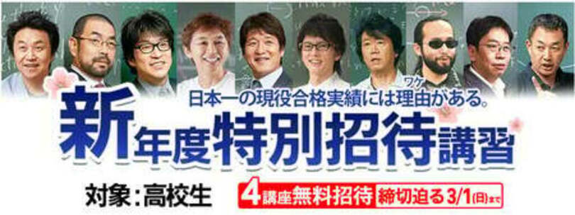 東進ハイスクール・東進衛星予備校(以下、東進)を運営する株式会社ナガセ(本社:東京都武蔵野市 代表取締役社長 永瀬昭幸)は、新高3生・新高2生・新高1生対象の「新年度特別招待講習」を、春休みに先駆けて開講しています。
