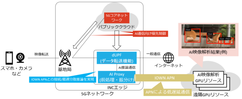 株式会社NTTドコモ(以下、ドコモ)とNTT株式会社(以下、NTT)は、分散配備された遠隔GPUリソースと5GネットワークをIOWN APNで接続するINCエッジを活用したIn-Network Computing※5(以下、INC)により、低遅延なAI映像解析の実証実験に成功しました。