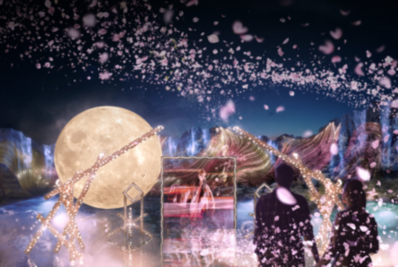 本イベントの象徴である巨大な“月”のインスタレーションに、春限定の桜モチーフ演出が加わります。