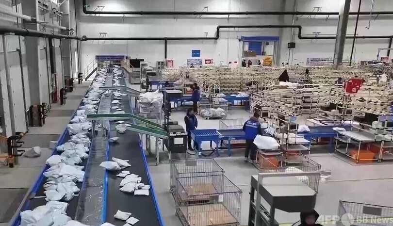 越境EC物流企業責任者の陳霄氏は、「新モデルでは、企業は倉庫内で通関手続きを完了することができ、越境ECプラットフォームにある商品の約30%は1日繰り上げて出荷可能となる。小包の平均通関時間は3時間以上短縮され、国内物流コストは20%以上削減された」と説明しました。(c)CGTN Japanese/AFPBB News