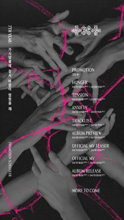 「7TH YEAR:茨の茂みにしばらく風が止まった時」は4月13日午後6時にリリース。同日午後8時にはカムバックショーケースが開かれる。