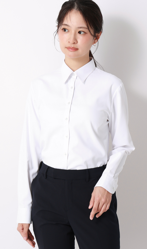 『透けないシャツ』は、防透け指数93.0という高い防透け性能と遮熱・形態安定性を兼ね備えたアイテムです。人目や身だしなみが気になるビジネスシーンでも安心して着用できるシャツとして、売上枚数が前年比の約3倍に達するなど、大きな反響をいただいております。春は新生活で、白シャツを着用する機会が増える季節です。多くの女性が抱える「インナーの透け」や「襟元のメイク汚れ」という白シャツ特有のお悩みに応えるため、この度『透けないシャツ』をアップデートしました。